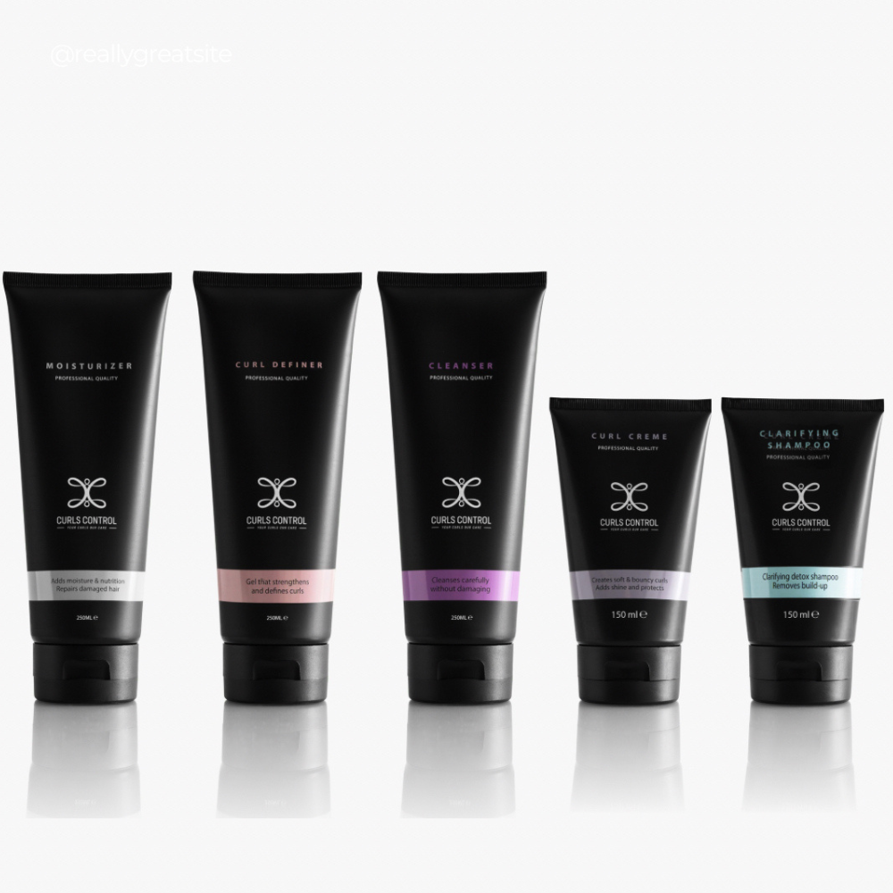 Het TOTAALPAKKET PLUS GROOT bestaat uit de Clarifying Shampoo (150ml), Cleanser (250ml), Moisturizer (250ml), Curl Crème (150ml) en de Curl Definer (250ml).